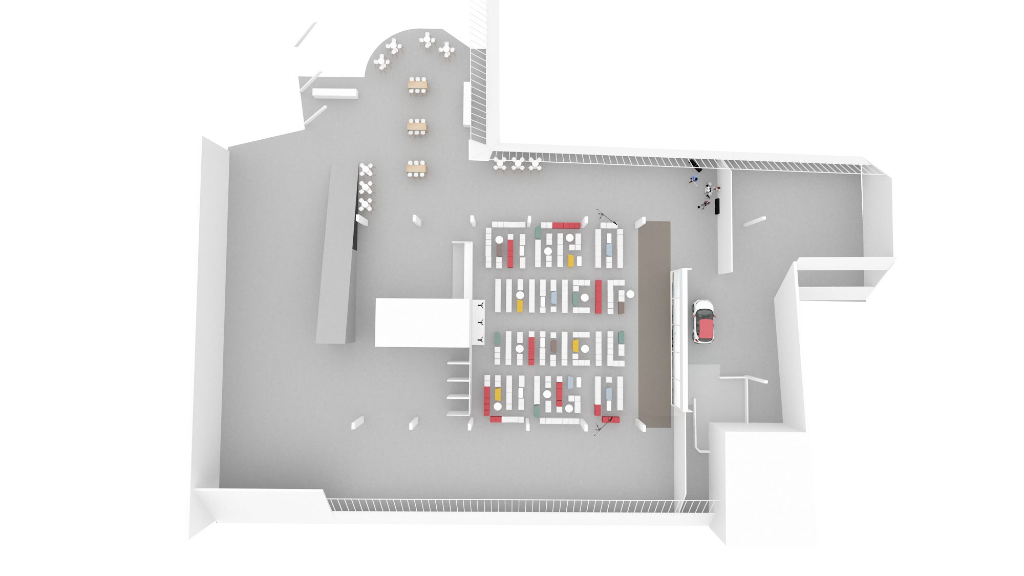 Ce point de vue donne l’impulsion scénographique : jouer avec le réel et le virtuel de l’environnement citadin dans des codes pop et acidulés propres à la marque.