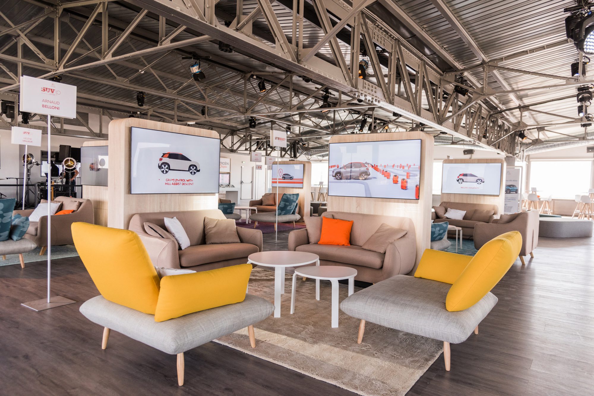 L’espace Loft, propose une programmation cocktail et concert, expose les derniers modèles et met à disposition des petits salons colorés et cosy pour les interviews presse. Cette déclinaison feel good vient réinjecter dans cet espace imposant et industriel une dimension dynamique et bienveillante.